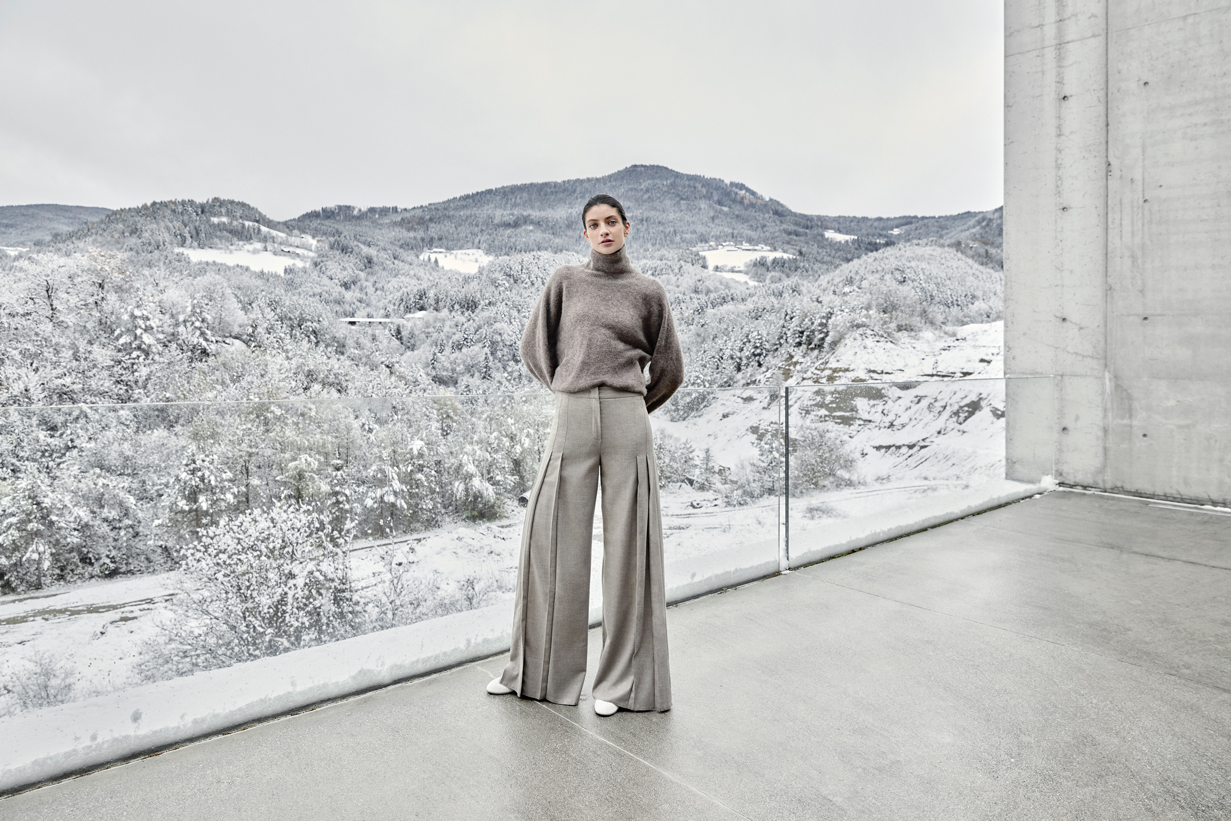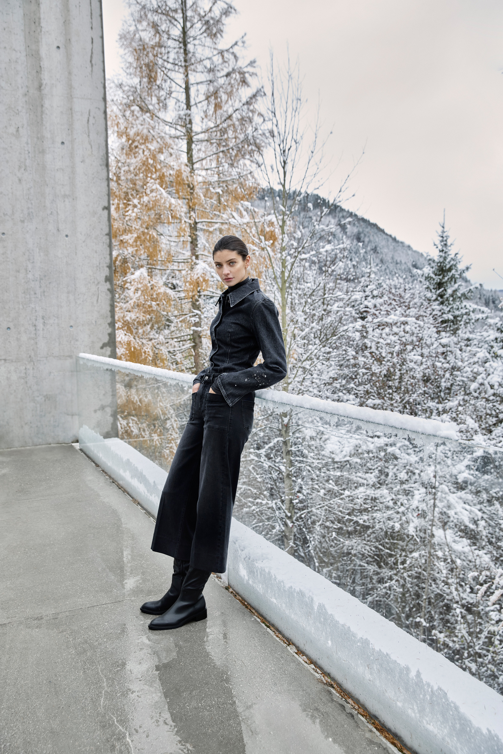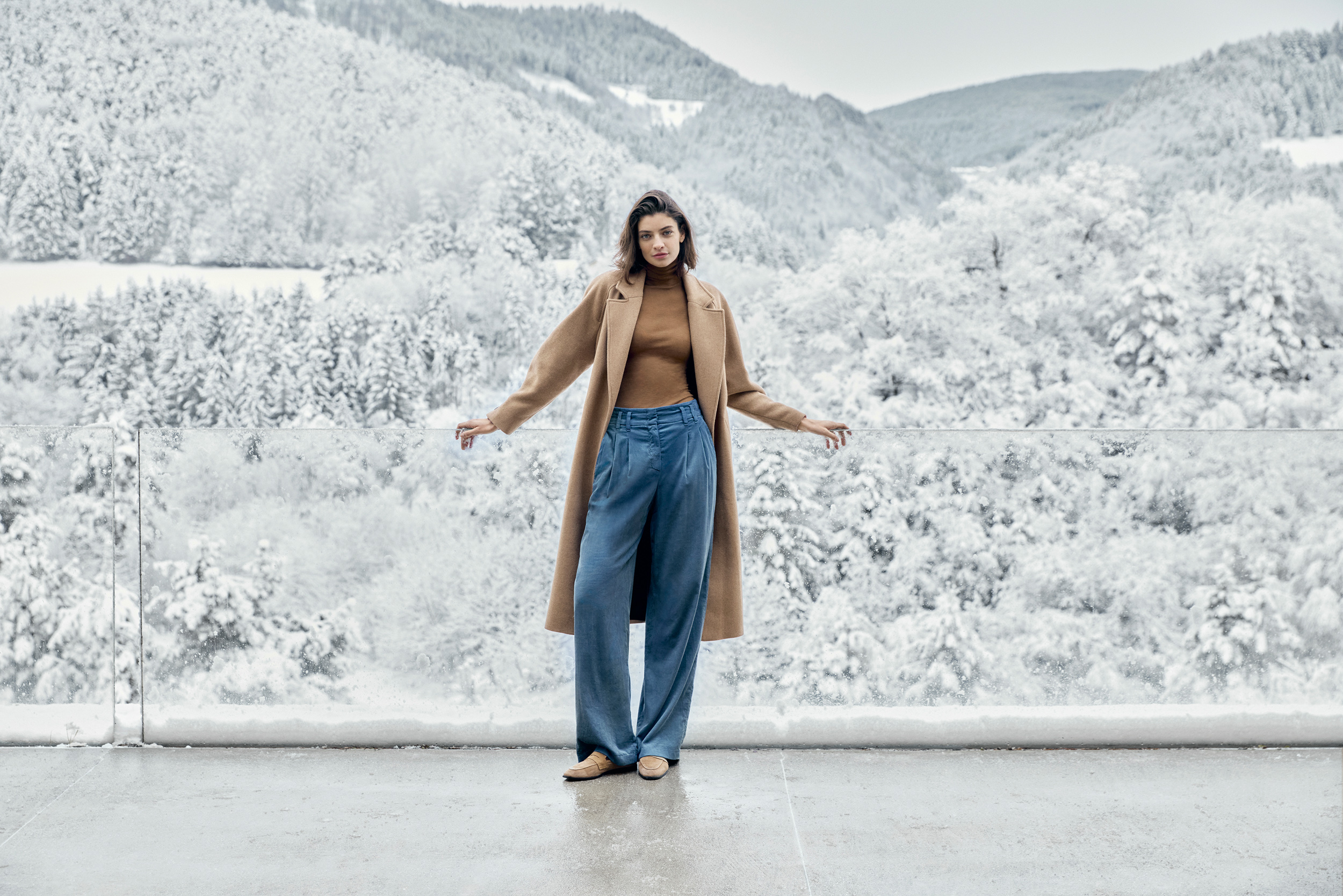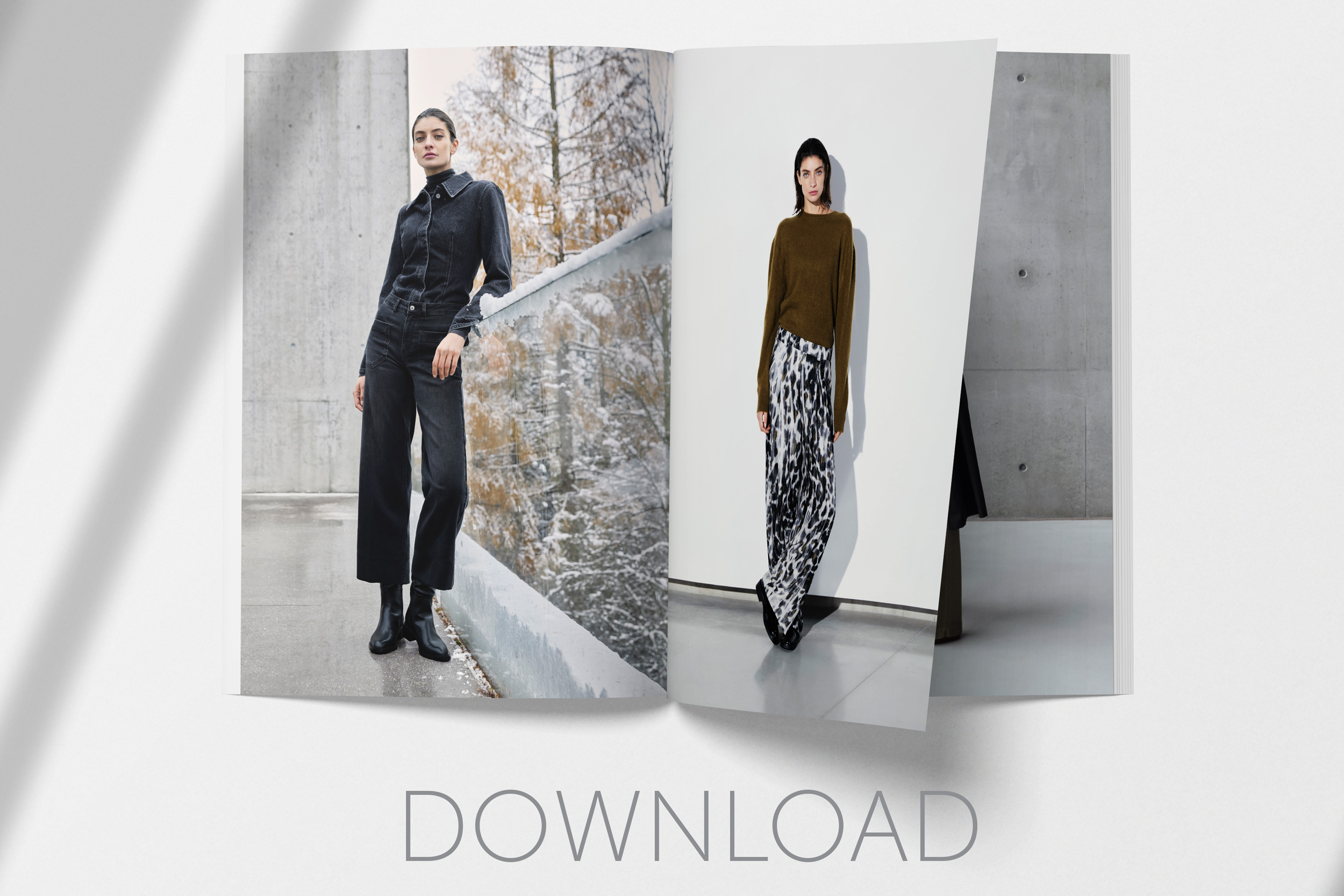Tout nouveau dans le domaine du denim, nous avons intégré le style worker dans la collection. Un imprimé léopard détourné et modernisé avec une touche de cachemire offre une nouveauté hivernale au thème de l‘imprimé pour la jupe midi et le pantalon large.
