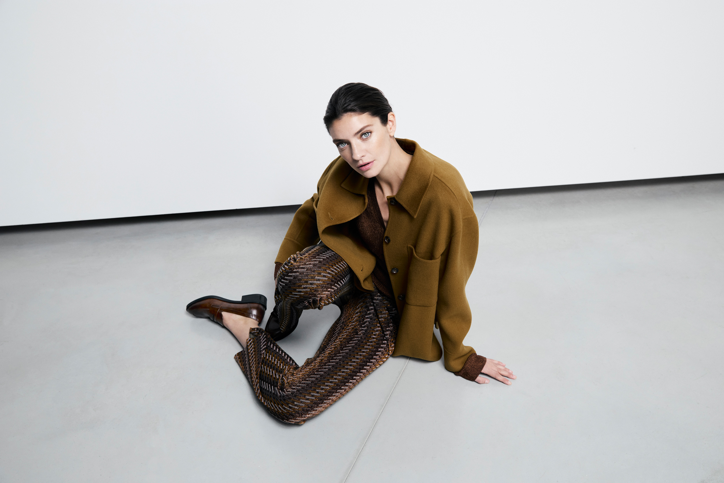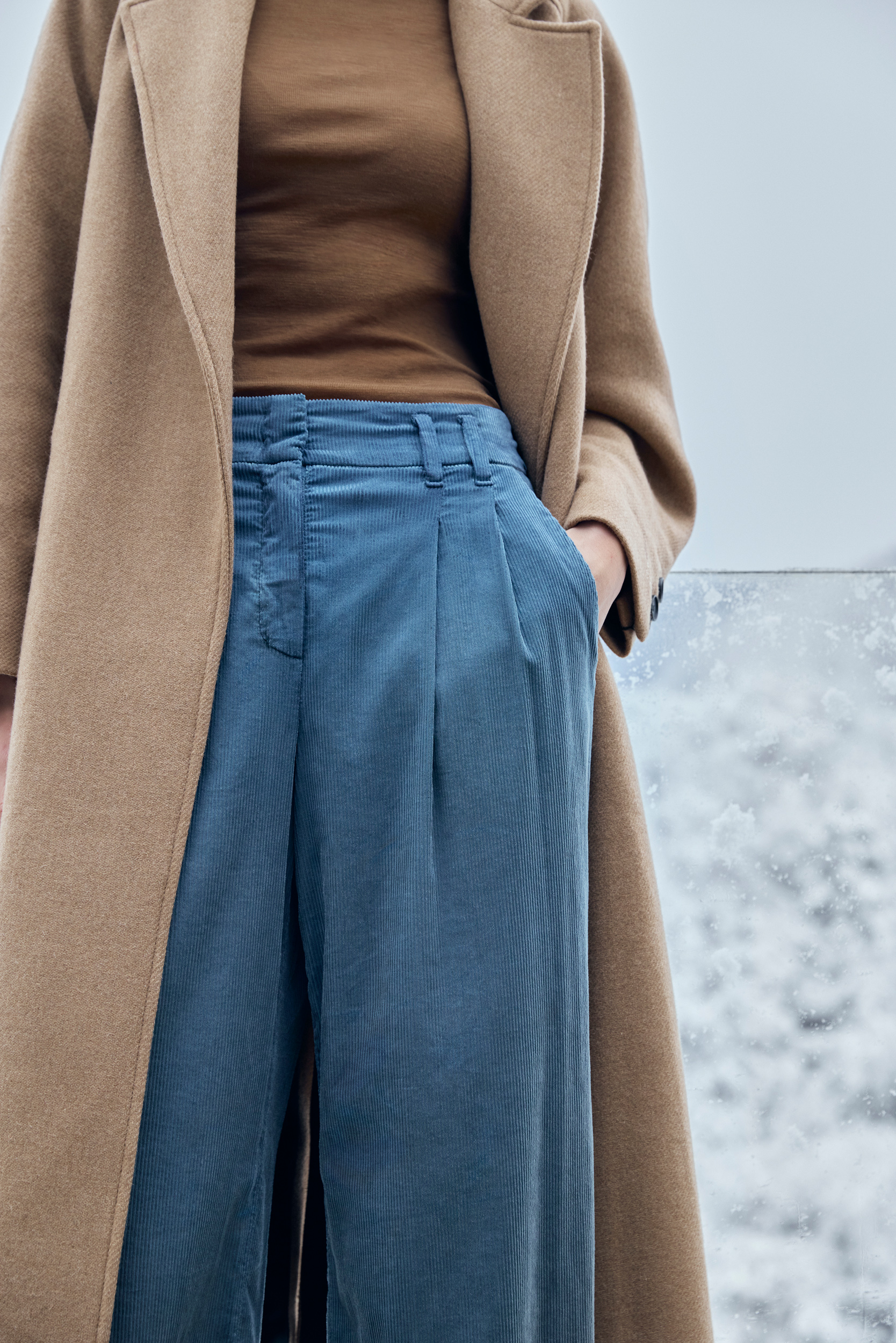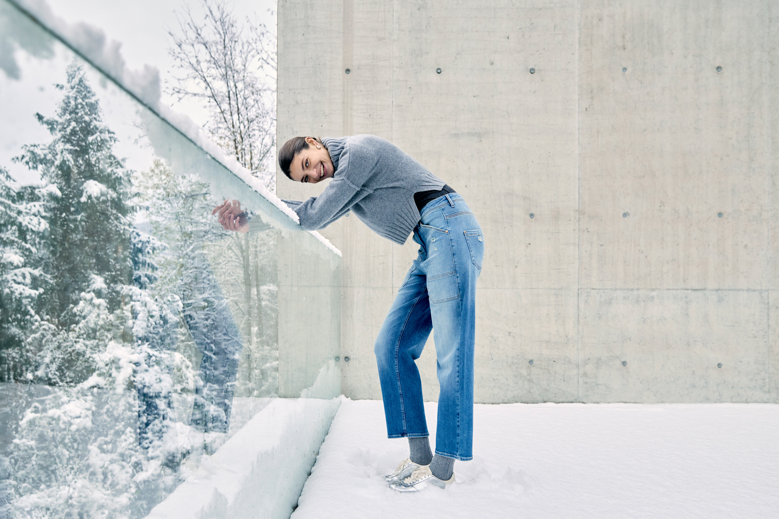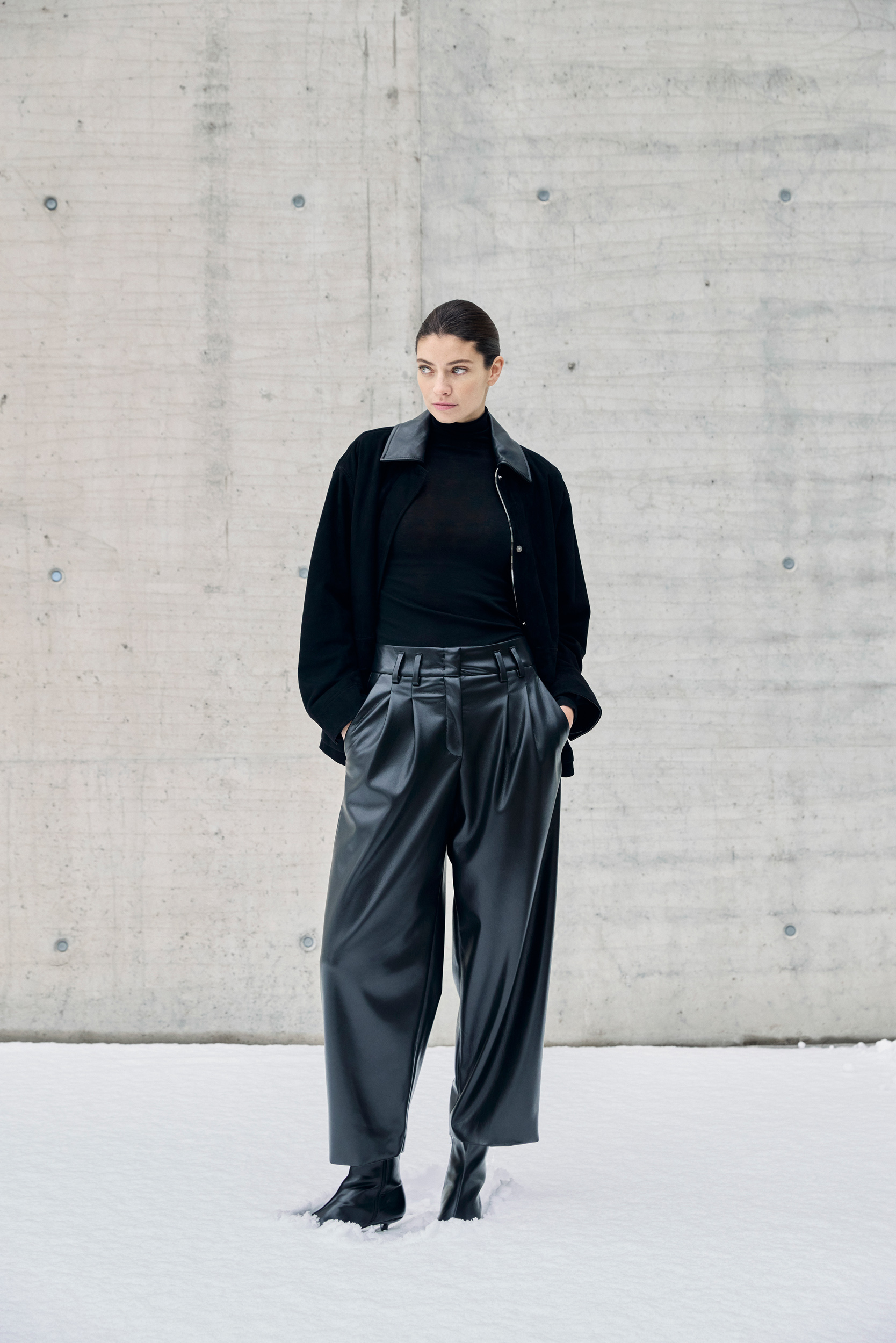 Tout nouveau dans le domaine du denim, nous avons intégré le style worker dans la collection. Un imprimé léopard détourné et modernisé avec une touche de cachemire offre une nouveauté hivernale au thème de l‘imprimé pour la jupe midi et le pantalon large.