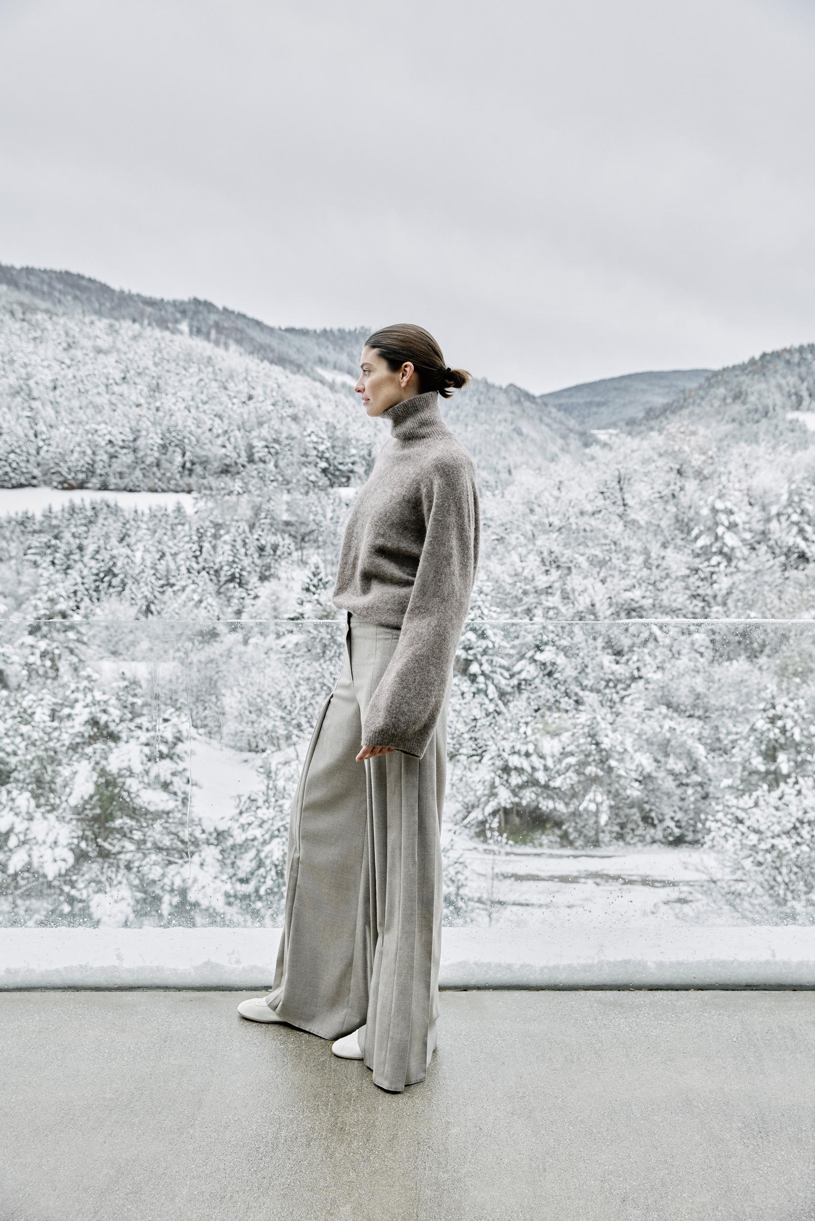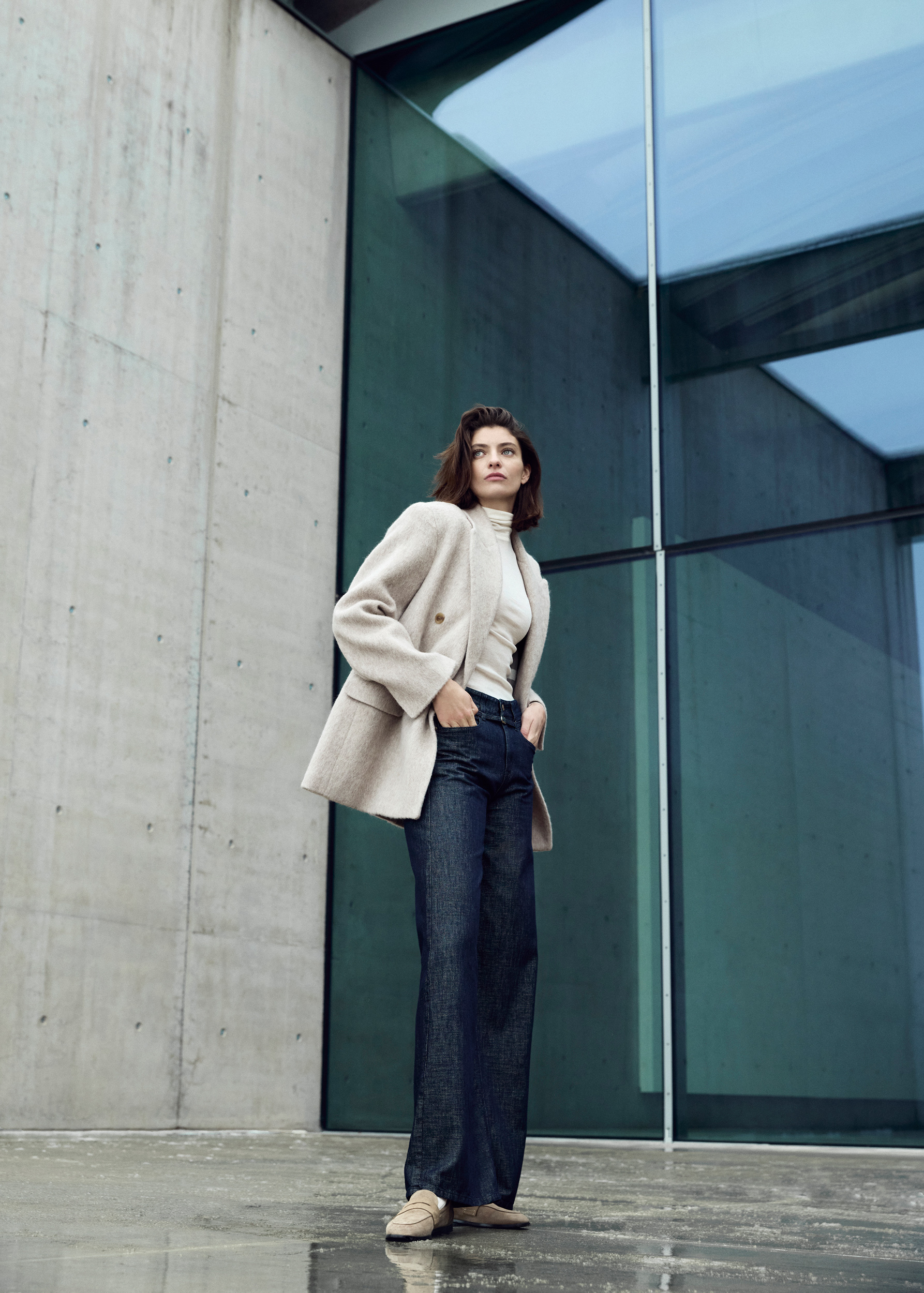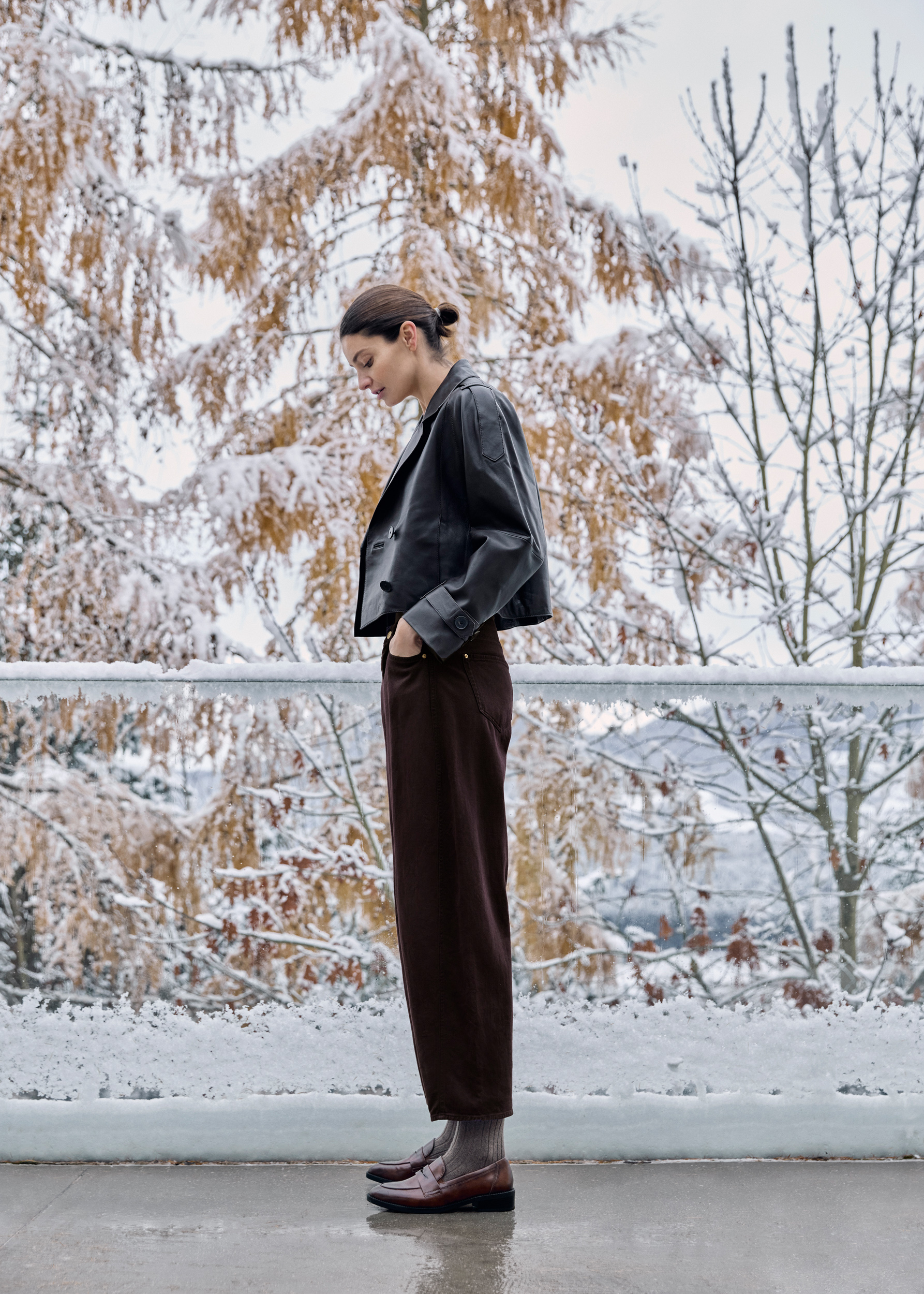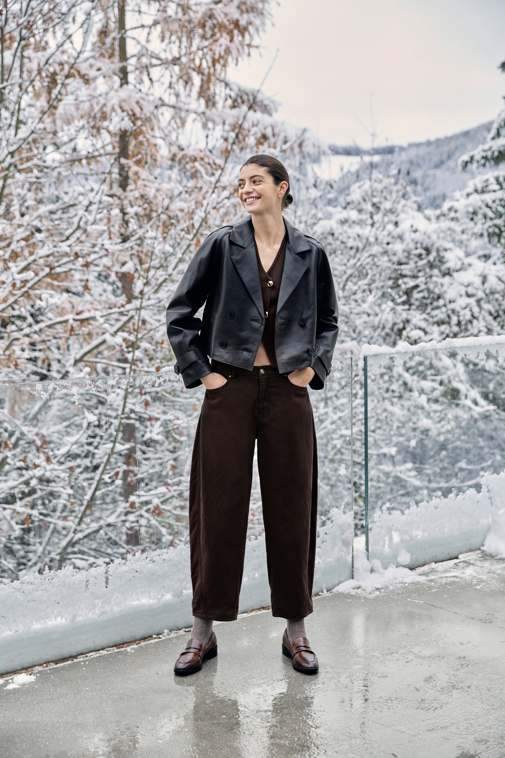 Tout nouveau dans le domaine du denim, nous avons intégré le style worker dans la collection. Un imprimé léopard détourné et modernisé avec une touche de cachemire offre une nouveauté hivernale au thème de l‘imprimé pour la jupe midi et le pantalon large.