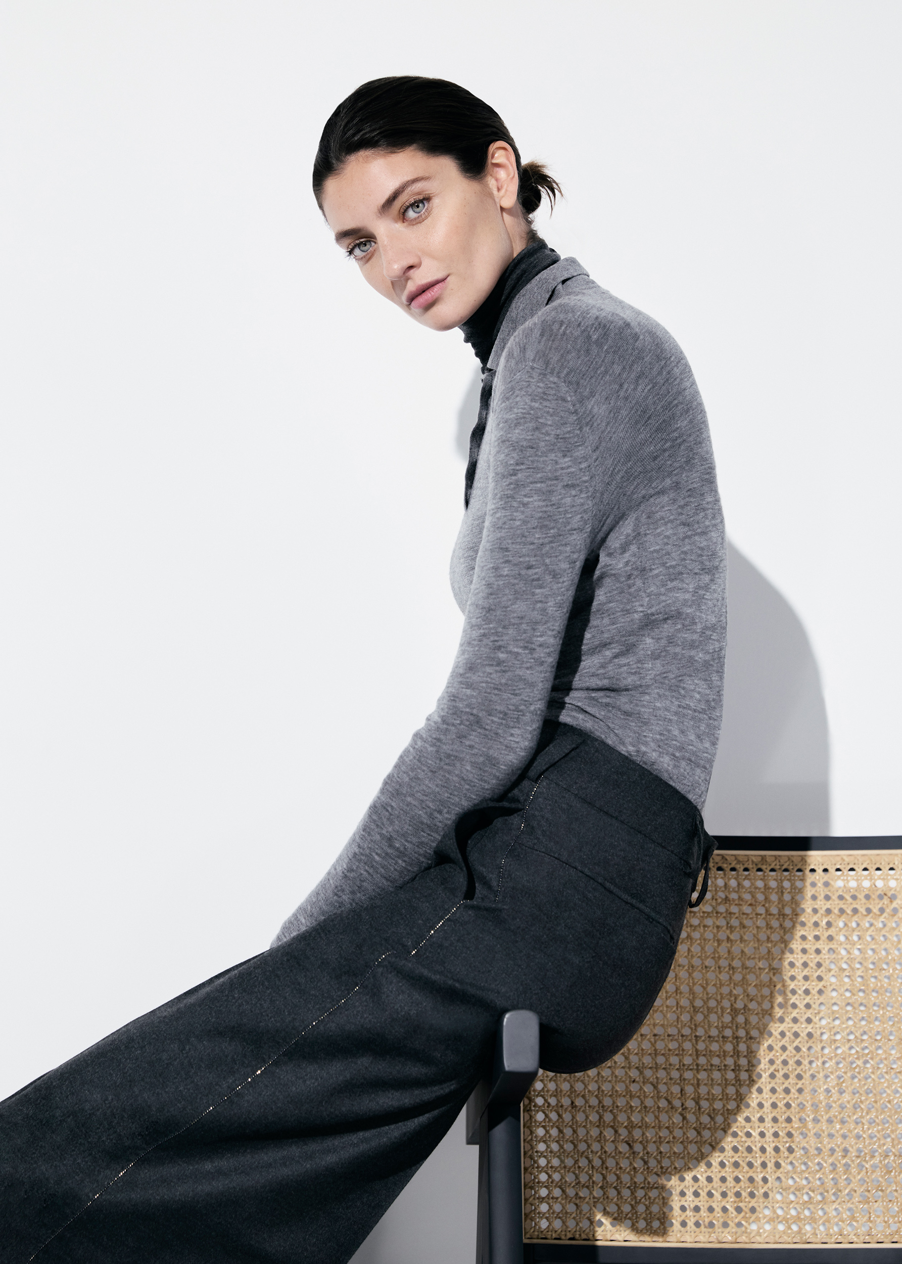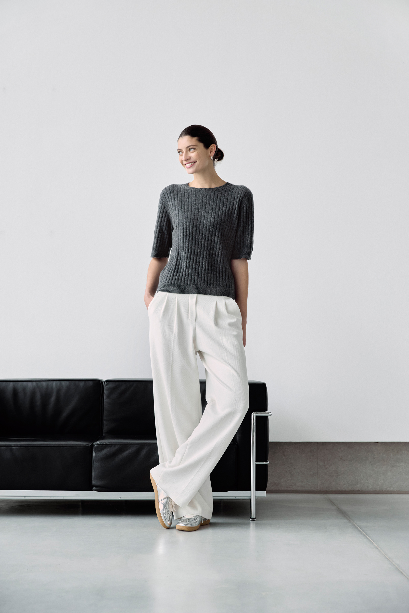 La collection est complétée par des jupes midi à la mode ainsi que par des t-shirts et de toutes nouvelles blouses à chemise qui peuvent être combinées de manière décontractée ou élégante. Les styles les plus vendus, avec des jambes droites ou en forme de cigarette, continuent à soutenir le contexte professionnel.