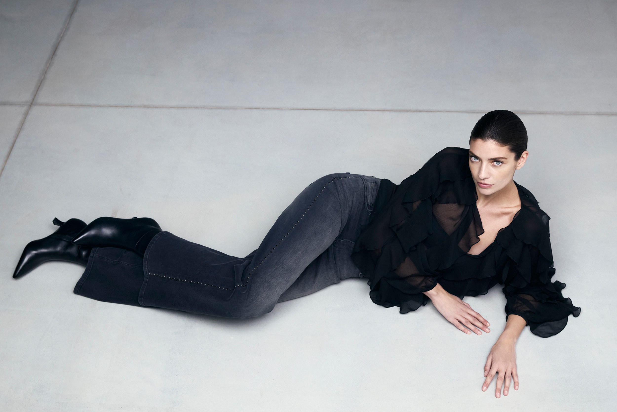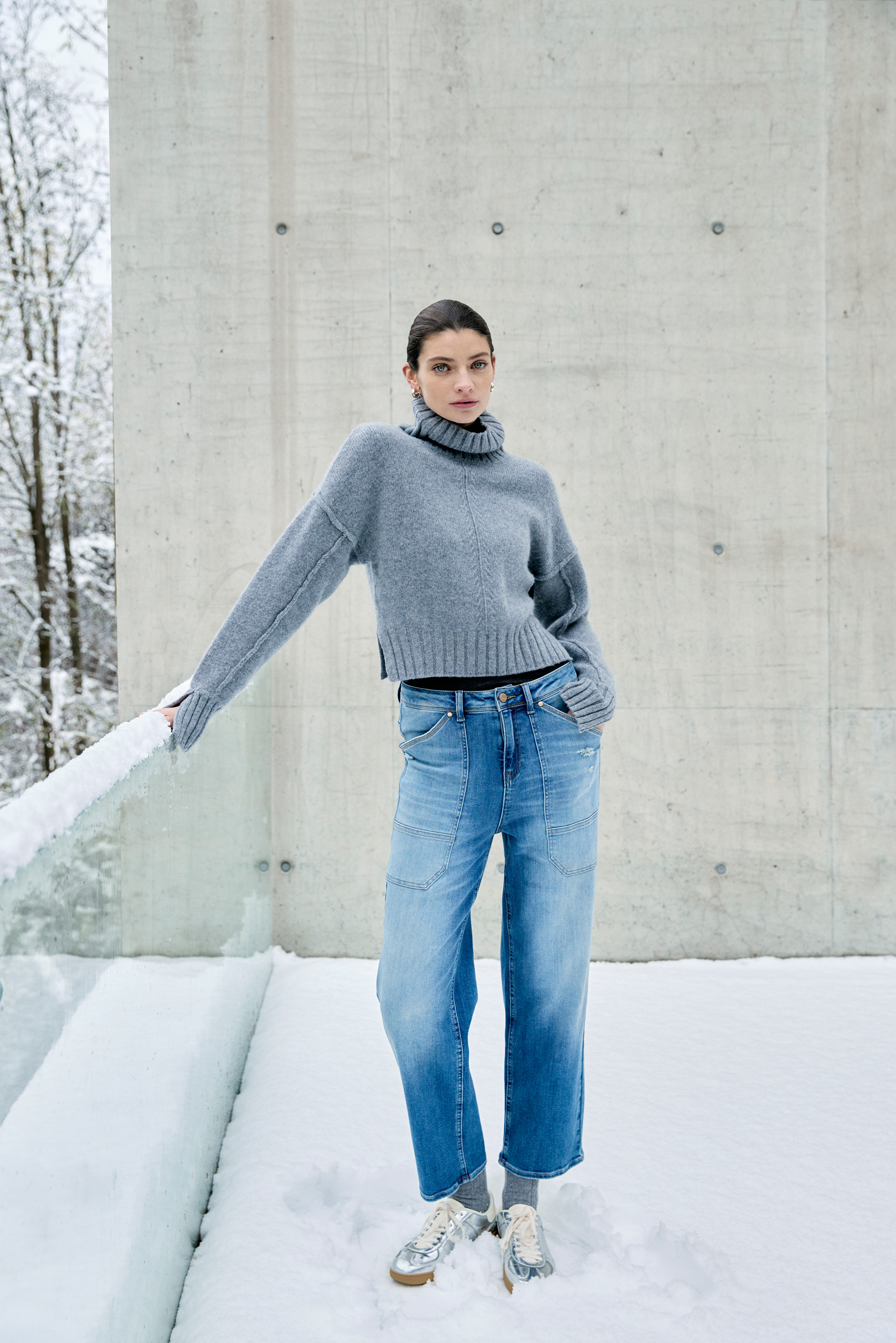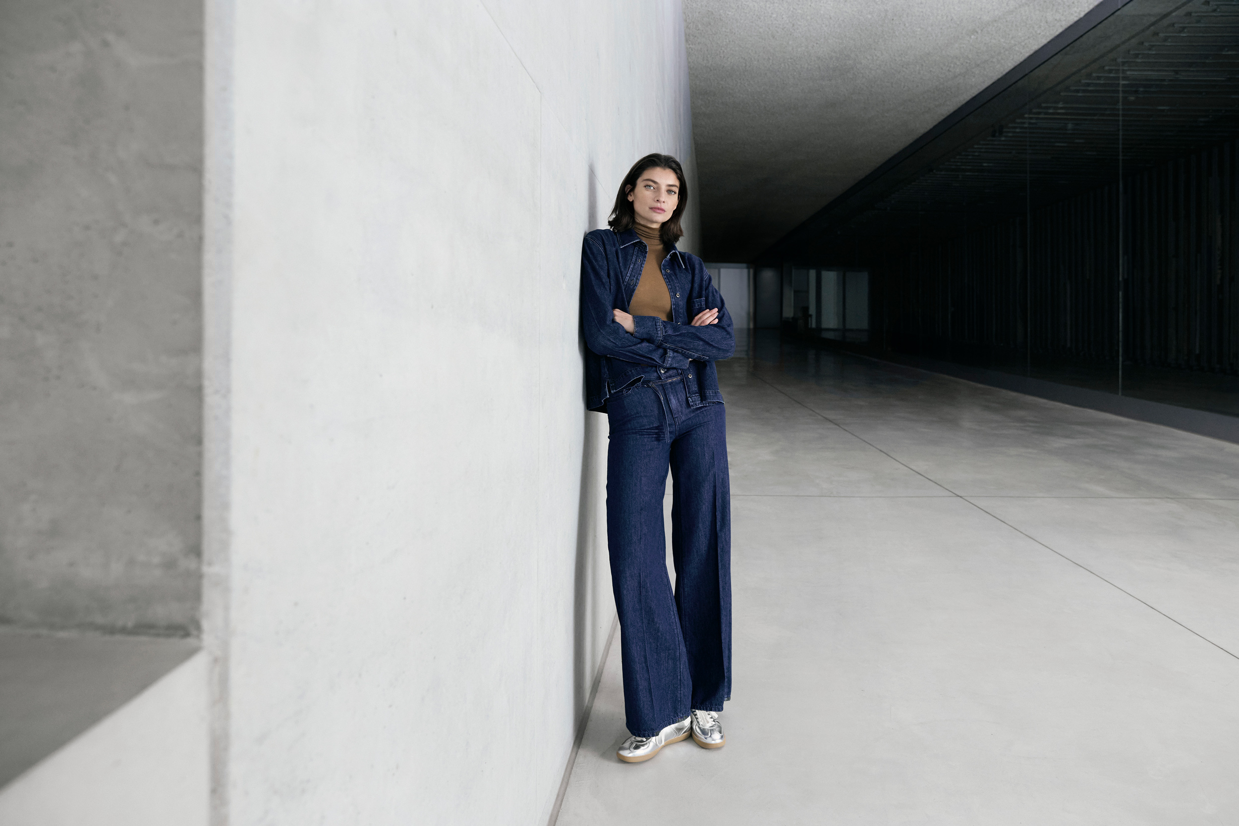 We are starting the new season with real eye-catchers such as skirts and trousers in a fringed fabric look or flowing lurex denim in a wide-leg silhouette. A brand new addition to the denim range is the worker style.