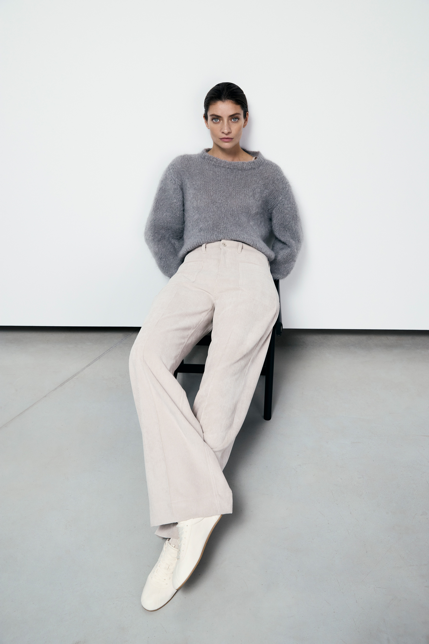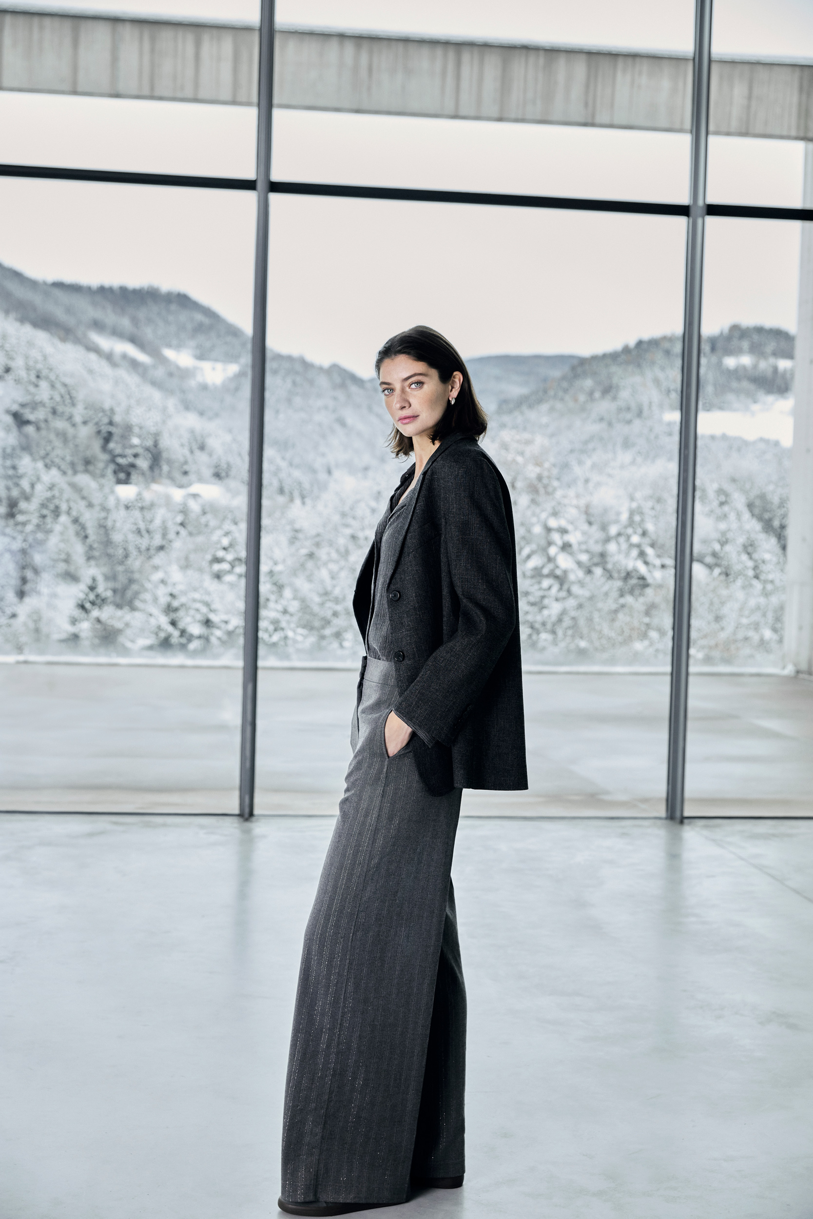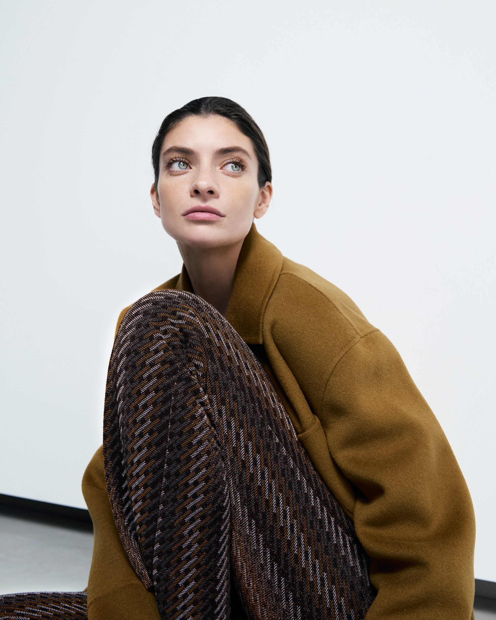 Nous entrons dans la nouvelle saison avec de véritables accroche-regards, comme par exemple une jupe et un pantalon dans un look « fringed fabric » ou un denim fluide en lurex dans une silhouette wide-leg.